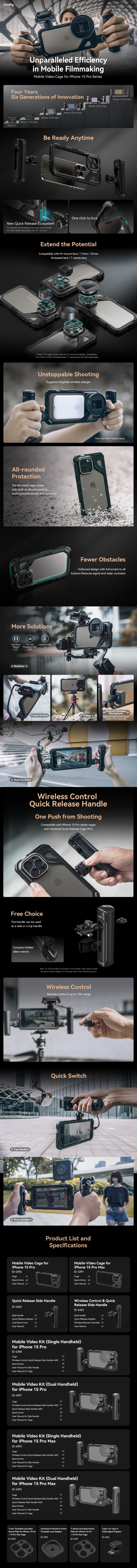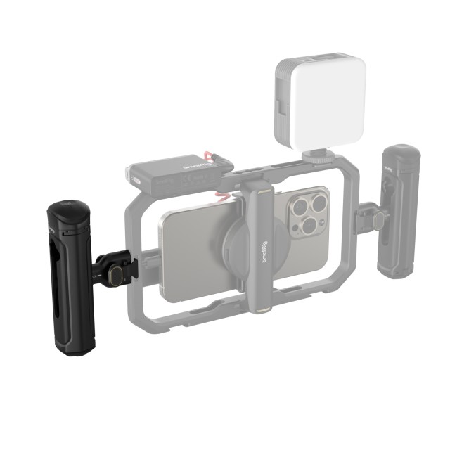 SmallRig Wireless Control & Quick Release Side Handle 4402 je dodáván s dobíjecím modulem bezdrátového dálkového ovládání, který je kompatibilní s fotografickými a video funkcemi většiny mobilních telefonů se systémem Android / IOS, a také s rychloupínacím adaptérem, který okamžitě propojí rukojeť s novou řadou rychloupínacích klecí SmallRig. Může sloužit jako horní rukojeť při vertikální montáži. Na horní straně rukojeti se nachází držák cold shoe pro mikrofon nebo LED video světlo.