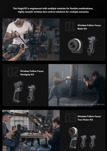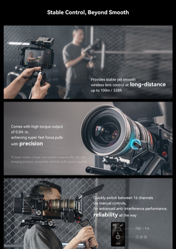 Sada bezdrátového ovladače zaostřování SmallRig 3917B obsahuje elektronický ovladač Bluetooth LE, bezdrátovou rukojeť, adaptér rukojeti a kabel USB-C, které umožňují přesné ovládání objektivu a spouštění/zastavování kamery (pomocí volitelných kabelů) pro systémy SmallRig MagicFIZ s 0,96" OLED displejem, pamětí pro případ výpadku napájení, vibrační zpětnou vazbou a napájením z baterie LP-E6 v ergonomickém reverzibilním designu pro profesionální video zařízení.
