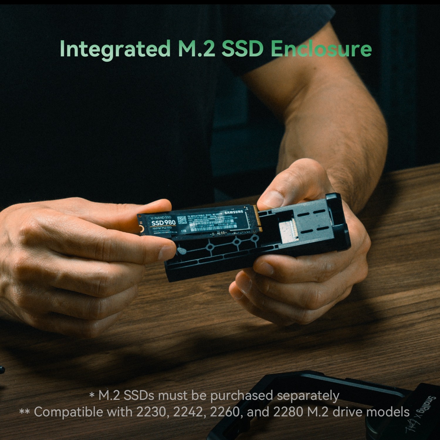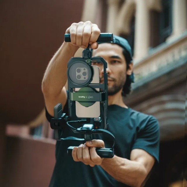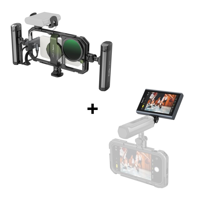 SmallRig x Brandon Li All-in-One Mobile Video Kit Full Quick Release Co-design Edition 4596B je dokonalým komplexním řešením pro profesionální natáčení videa pomocí smartphonu. Sada obsahuje univerzální klec pro mobilní telefony, otočnou boční rukojeť s krytem M.2 SSD a bezdrátovým dálkovým ovladačem, univerzální adaptér filtru 67 mm, magnetický 67 mm VND 2-32 (1-5 Stop), dokovací stanici 4 v 1 USB-C, adaptér Arca-Swiss s rychlým uvolňováním, držák powerbanky a další příslušenství. Univerzální klec podporuje 67mm magnetické filtry, které poskytují řešení proti oslnění pro většinu mobilních telefonů a snižují únik světla z filtru. Otočná boční rukojeť s bezdrátovým ovládáním integruje více funkcí a je vybavena krytem pro M.2 SSD, který podporuje přímé externí nahrávání. Odnímatelné bezdrátové ovládání umožňuje dálkové fotografování, zaostřování a přiblížení/oddálení. Plynulá rotace adaptéru rukojeti umožňuje okamžité přepínání mezi režimy boční a horní rukojeti, zatímco mechanismus rychlého uvolnění na obou stranách umožňuje rychlou montáž a nastavení bez použití nástrojů. Sada je také dodávána s adaptérem Arca-Swiss pro rychlé uvolnění, který podporuje rychlé připevnění ke kleci a profesionálním stativům. Sada klece poskytuje několik standardních otvorů se závitem 1/4"-20 a držáků pro studené boty, které podporují volnou kombinaci příslušenství a poskytují více možností pro fotografování. Dokovací stanice 4 v 1 USB-C nabízí vysokovýkonný nabíjecí port PD 100 W, port USB-C 3.1 a dva porty USB-C 2.0. Při použití pro mobilní videografii umožňuje současné nabíjení, ukládání videa ProRes a využití mikrofonu USB-C.