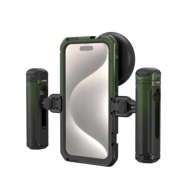 SmallRig x Brandon Li Mobile Video Kit pro iPhone 15 Pro Max Co-design Edition 4407B obsahuje dvě rukojeti pro zajištění stabilního natáčení videa a vlogování; bezdrátové ovládání umožňuje natáčení "jedním kliknutím". Klec má několik otvorů se závitem 1/4"-20 a studené patky pro upevnění rukojeti, stativu, mikrofonu, LED videosvětla atd. Všechny jsou vybaveny novým rychloupínacím ekosystémem SmallRig pro snadné a okamžité přepínání mezi natáčením v horizontální a vertikální orientaci.