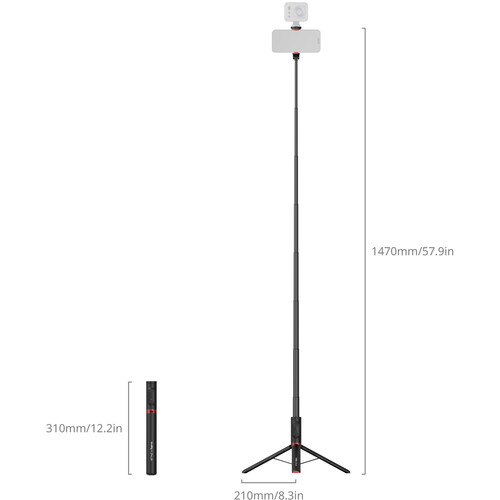 Selfie tyč SmallRig ST30 Lite Boom, navržená ve spolupráci s filmařem Drexem Leem, se jediným pohybem bez použití tlačítka promění z 31 cm dlouhé hůlky vhodné na cesty na 147 cm dlouhou fotografickou sestavu se stativem. Její trojúhelníková základna se automaticky rozloží pro okamžité nastavení, zatímco protiskluzové silikonové nožičky a výsuvné podpěrné nohy udrží telefony do hmotnosti 1 kg stabilní na téměř jakémkoli povrchu. Skrytá, široká úchytka telefonu se otáčí pro bezproblémové vertikální nebo horizontální rámování a vestavěný držák cold-shoe umožňuje přidat malé světlo nebo mikrofon. Ve spojení s odnímatelným dálkovým ovladačem Bluetooth (dosah 10 m) poskytuje ST30 Lite bezproblémové selfie, vlogy a kreativní záběry, kdekoli vás napadne inspirace.