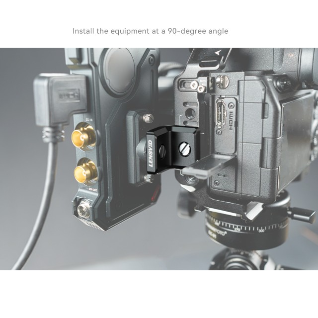 1. Poskytuje kompaktní řešení pro instalaci zařízení a příslušenství, jako jsou bezdrátové vysílače obrazu, monitory, montážní desky V-mount atd., pod úhlem 90° a umožňuje kompaktnější vybavení kamery.