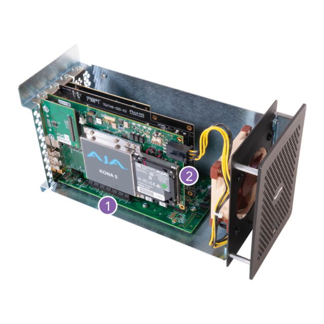 echo Express SE IIIe obsahuje přídavný napájecí konektor PCIe, který vám umožní nainstalovat kartu vyžadující přídavné napájení, například AJA® Kona® 5 nebo Blackmagic DeckLink 4K Extreme 12G a karty Epoch a KRONOS SDI od Bluefish444.