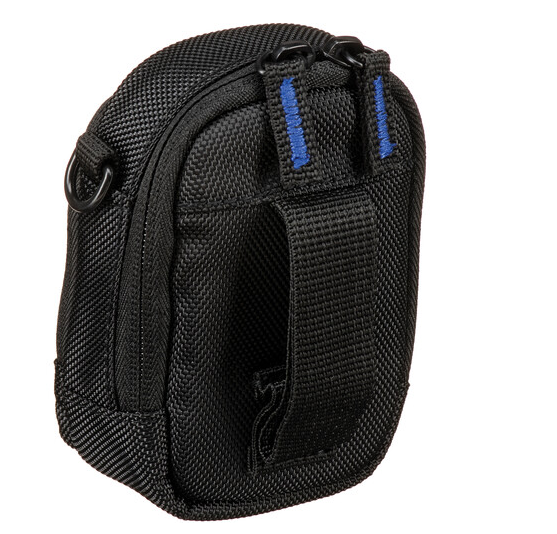 Pouzdro se vyznačuje měkkou, ale pevnou konstrukcí s bezpečným zapínáním na zip, které zajistí bezpečné uložení fotoaparátu. Přední vnější kapsa poskytuje další prostor pro malé příslušenství, jako jsou paměťové karty nebo náhradní baterie, a zajišťuje, že nezbytné věci máte vždy po ruce.