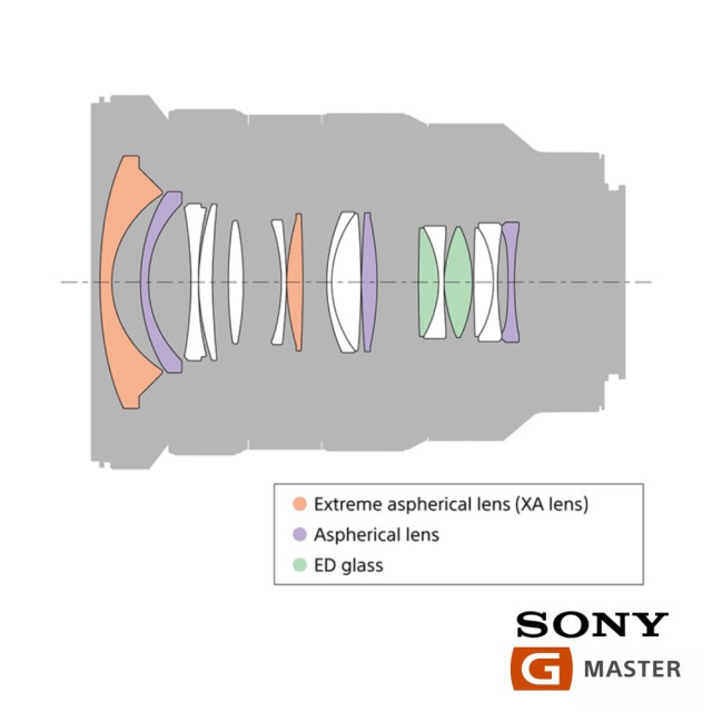 Tento objektiv je vybaven dvěma prvky Sony XA (extrémně asférické) s přesností povrchu 0,01 mikronu. Zkreslení, které se obvykle vyskytuje u širokoúhlých objektivů se zoomem, je pečlivě kontrolováno, stejně jako astigmatismus a zakřivení pole. Nepřitažlivý cibulovitý bokeh je účinně potlačen prvky XA (extrémně asférické), takže v rozostřených oblastech je dosaženo hladkého a krásného bokehu.