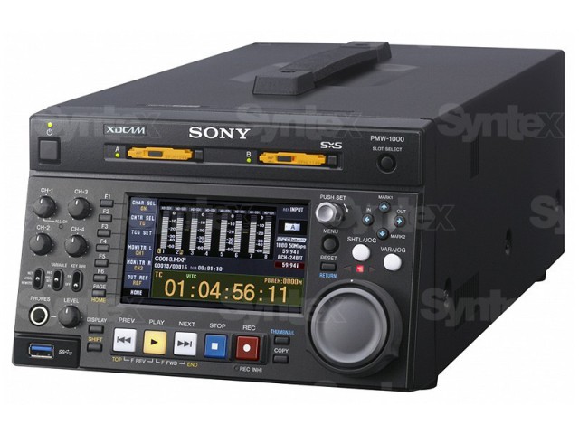 The compact, affordable PMW-1000 SxS memory recording deck has two SxSExpressCard™ memory card slots providing a wide variety of HD and SD recordings and playback, including 50 Mbps XDCAM HD422. The half-rack size recorder has SD / HD-SDI interfaces and Gigabit Ethernet (1000BASE-T) interfaces for non-linear network operations, as well as an RS-422 interface and jog/shuttle control to allow “linear like” ingest and editing.