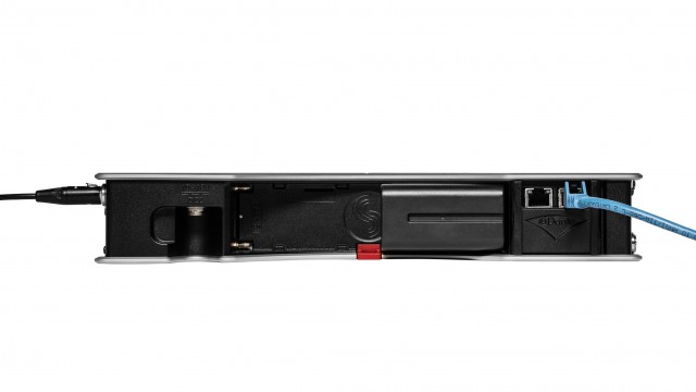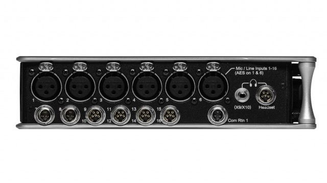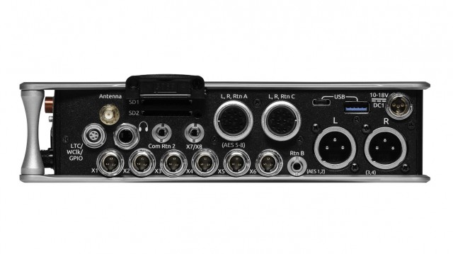 Přenosný rekordér se 16 mic/line předzesilovači, 32 kanálů DANTE in/out, až 36 nahrávacích stop, AES in/out, 12 analogových výstupů, analogové limitery, high-pass filtry, záznam na SSD a 2x CD karty, přesný timecode generátor, napájení pomocí 2 x L-Mount baterií nebo externí napájení přes TA4 konektor, včetně adaptéru.
