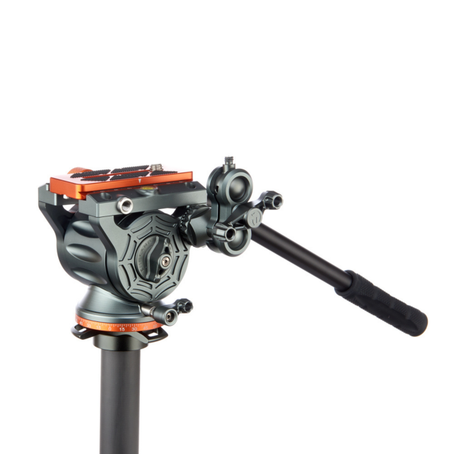 Hlava je navíc vybavena nastavitelným naklápěcím mechanismem, který umožňuje plynulý pohyb. Tento mechanismus pak lze ovládat buď přímo, nebo pomocí přiloženého otočného ramene, které lze namontovat na obě strany hlavy pro pravé i levé držení. Hlava má třecí ovládání naklápěcího mechanismu, vroubkovaný upínací knoflík pro lepší uchopení, pákový efekt a vroubkovanou základnu otočnou o plných 361°, kterou lze podle potřeby zablokovat. Díky tomu je hlava ideální pro horizontální i vertikální fotografování, což oceníte zejména při fotografování různých budov, oblohy nebo velké skupiny lidí.