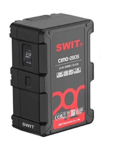 SWIT CIMO-290S je 290Wh baterie Cine V-mount s vysokým výkonem, nabíjení USB-C PD a OLED displejem s informacemi o výkonu, určená pro profesionální kameramany, kteří potřebují spolehlivý a dlouhotrvající výkon na place.