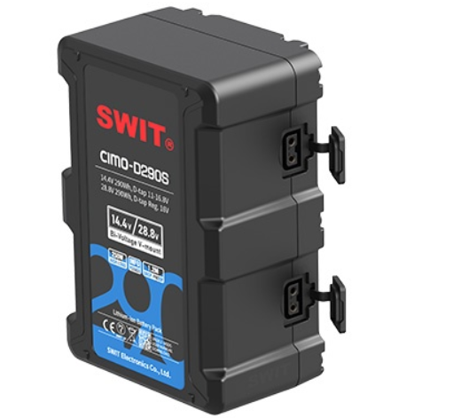 SWIT CIMO-D290S je vysoce výkonná baterie Cine V-mount určená pro profesionální filmovou produkci. Díky systému dvojitého napětí automaticky přepíná mezi 14,4 V a 28,8 V pomocí magnetické nálepky, což umožňuje bezpečné použití se zařízeními od standardních kamer s V-mountem až po vysoce výkonné filmové kamery, jako jsou RED V-Raptor XL, ARRI ALEXA LF/65 a BMD URSA CINE. Díky ternárnímu lithiovému článku o kapacitě 290 Wh poskytuje CIMO-D290S konstantní zátěž 250 W a špičkový výkon 335 W, a to i v extrémním chladu až do -20 °C, zatímco OLED displej poskytuje informace v reálném čase o stavu baterie, výstupním napětí, zbývající době provozu a varováních.