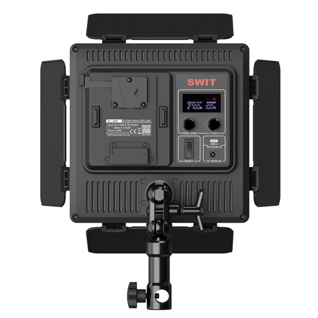 Pro pohodlné nastavení podporuje CL-40D více zdrojů napájení: baterii V-mount, USB-C a 15 V DC. Součástí balení je adaptér AC-DC.