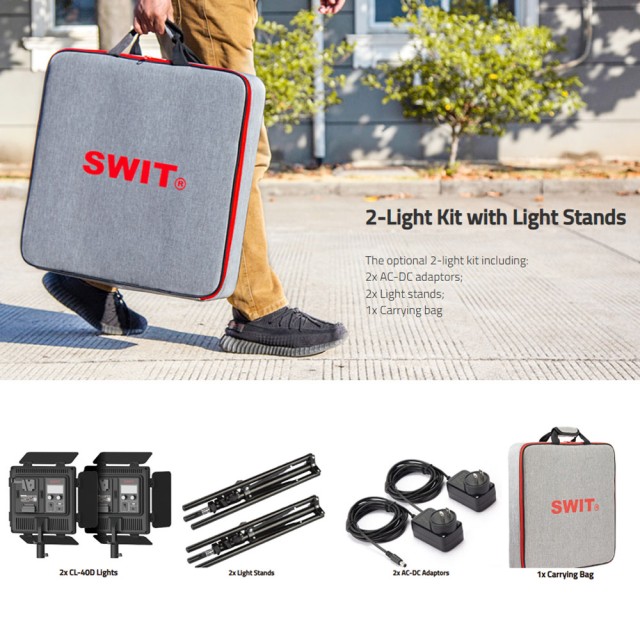 SWIT CL-40D 2KIT – 2xCL-40D se 2x 40W vysoce jasnými, ultra přenosnými, snadno nastavitelnými, bezventilátorovými dvoubarevnými panelovými světly a stativy