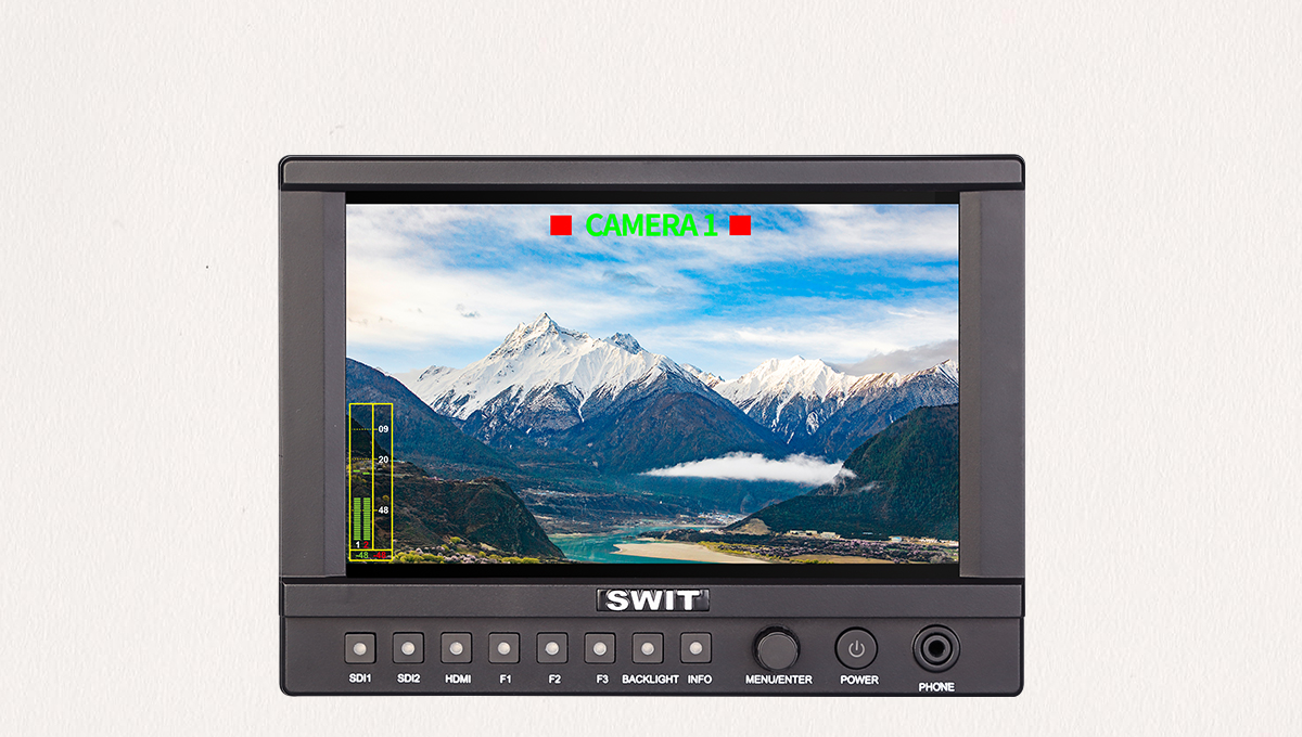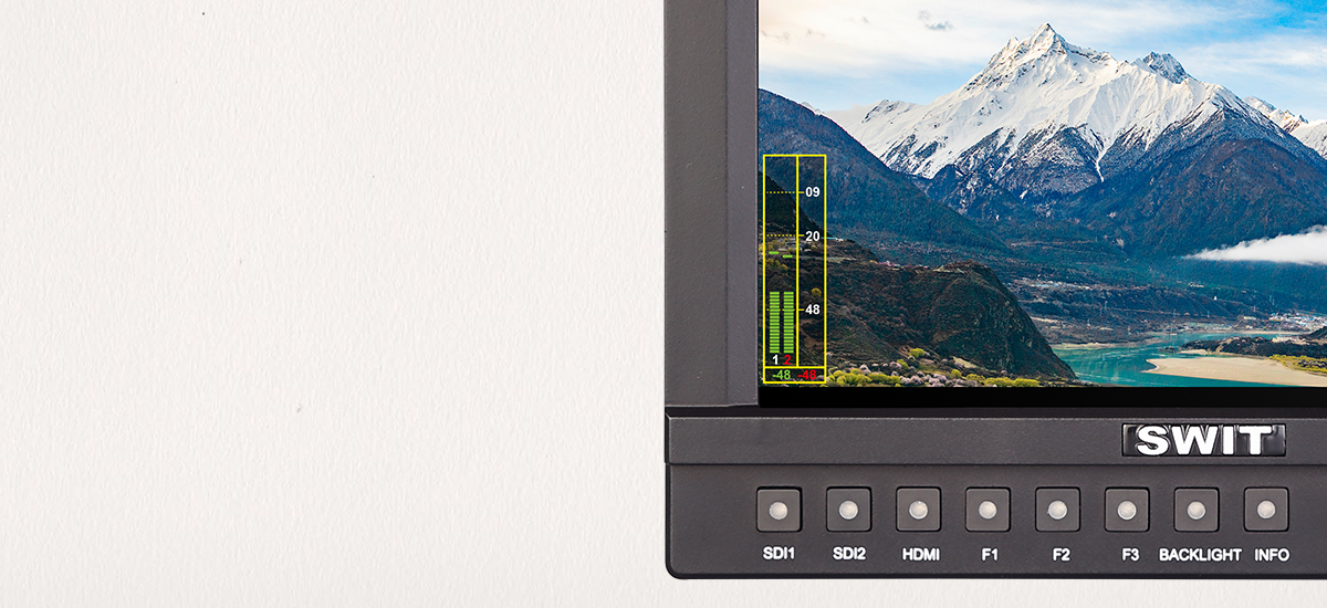 CM-S73H podporuje zobrazení 16kanálových SDI a 2kanálových HDMI® vestavěných měřičů zvuku se značkami a informacemi o abnormálním zvuku. Uživatelé si také mohou vybrat libovolný dvoukanálový zvuk pro výstup přes 3,5mm zásuvku nebo reproduktory. Polohu vzoru měřiče zvuku lze vybrat z jednoho ze čtyř rohů a lze zvolit zobrazení pouze 2 kanálů, 8 kanálů a plných 16 kanálů. Volit lze také značky stupnice, informace o výstrahách a průsvitnost vzoru měřiče zvuku.