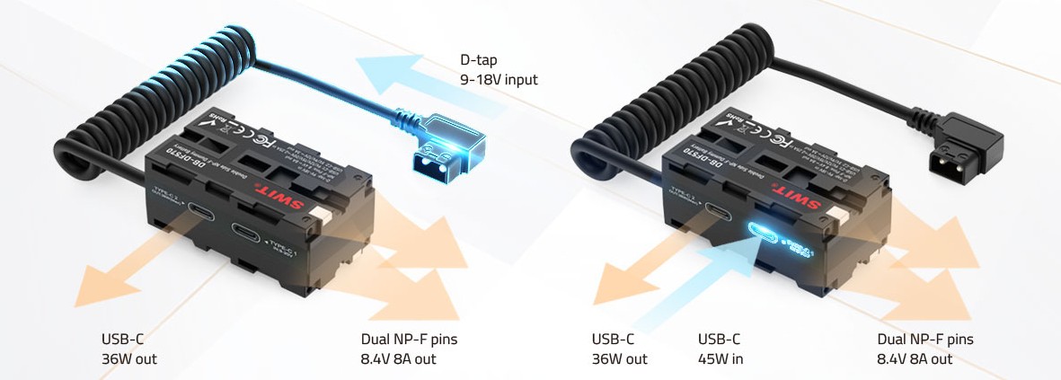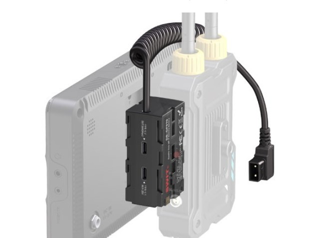 DB-DF570 je inovativní oboustranný adaptér pro falešné baterie typu NP-F, který se široce používá k napájení různých videozařízení. Je speciálně navržen pro připojení monitoru a bezdrátového vysílače a jejich současné napájení přes rozhraní D-tap nebo USB-C.