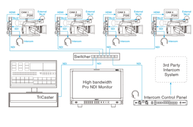 ET-N80 lze propojit s až 8 adaptéry kamer, podporuje modely EC-N200 (HD) i EC-N200-4K a umožňuje propojení pro rozšíření interkomových kanálů pro větší nastavení s více kamerami. Poskytuje plně duplexní interkomovou komunikaci, která umožňuje simultánní hovor a poslech mezi režisérem a kameramany.