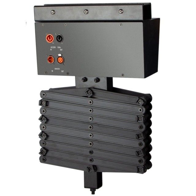 Na zadní straně pantografu umožňuje upevnit napájecí kabel světla nebo kabely DMX na každou sekci, a když se světlo pohybuje nahoru a dolů, kabely budou dobře uspořádané a protáhnou se společně s pantografem.
