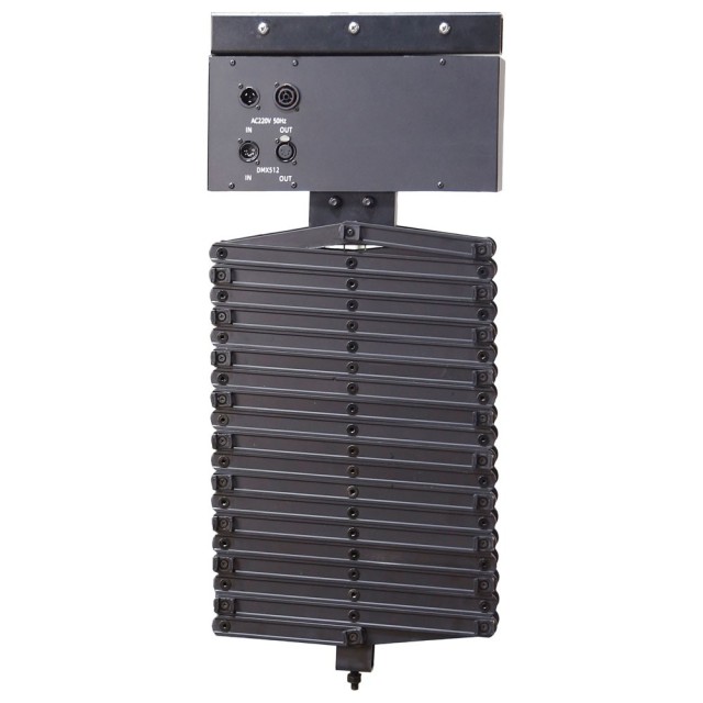 Na zadním panelu poskytuje vstup a výstup AC 100-240 V, 50/60 Hz, konektory PowerCON True1 a vstup a výstup DMX 5-pin XLR pro sériové připojení.