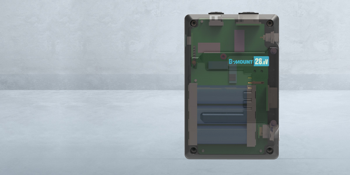 Po vyjmutí baterie B-mount poskytují vnitřní články regulované napětí 28 V pro napájení kamery.