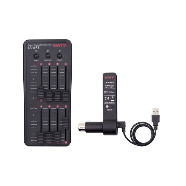 LA-WR8 is a portable wireless DMX controller for field light kit application, compatible with all standard DMX512 protocol lights, to get rid of complex DMX cable work and large DMX console, and makes the field light kit control easier and quicker.