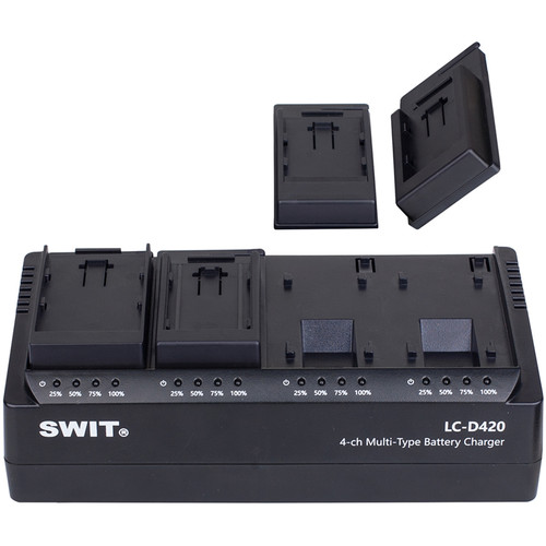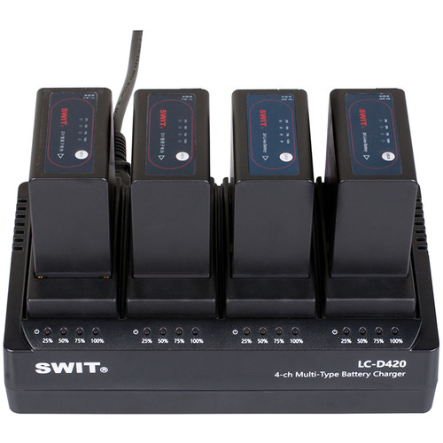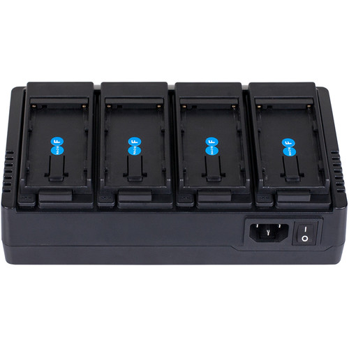 Nabíjejte až čtyři baterie současně pomocí čtyřkanálové simultánní nabíječky baterií DV SWIT. Dodává se se čtyřmi bateriovými deskami, které podporují baterie Sony řady NP-F a baterie SWIT S-8972, S-8970 a S-8770, a můžete je snadno vyměnit za jiné kompatibilní desky. Každá patice se nabíjí proudem 2 A a indikátor napájení LED vás informuje o stavu nabíjení jednotlivých baterií. Buďte s touto účinnou a všestrannou nabíječkou akumulátorů stále napájeni a připraveni.