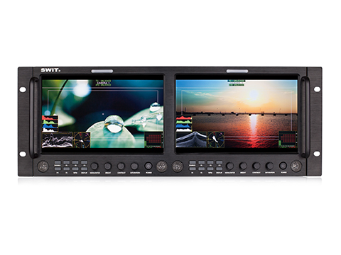 SWIT M-1093F 2x9" IPS LCD 19" rack 4U monitor s rozlíšením 1920×1200, kontrastom 800:1 a 2x 2K/3G/HD/SD-SDI, HDMI a kompozitným vstupom (+loop výstupom).