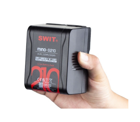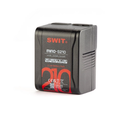 SWIT MINO-S210 je kompaktní kapesní baterie s V-mount konektorem o kapacitě 210 Wh, která poskytuje konstantní výkon až 200 W/16 A pro filmové kamery a světla. Je vybavena výstupy D-tap, USB-A a 65W USB-C s 48W USB-C vstupem pro rychlé nabíjení a podporuje zařízení s vysokým výkonem, včetně RED V-Raptor, přičemž si zachovává lehkou a ultrakompaktní konstrukci.