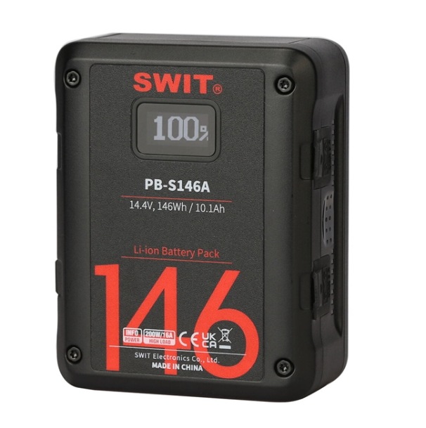 SWIT PB-S146A je kompaktní 146Wh digitální fotoaparátová baterie s více zásuvkami a čtvercovým designem optimalizovaným pro filmové kamery, která poskytuje vysoký výkon 200 W s monitorováním provozní doby v reálném čase.
