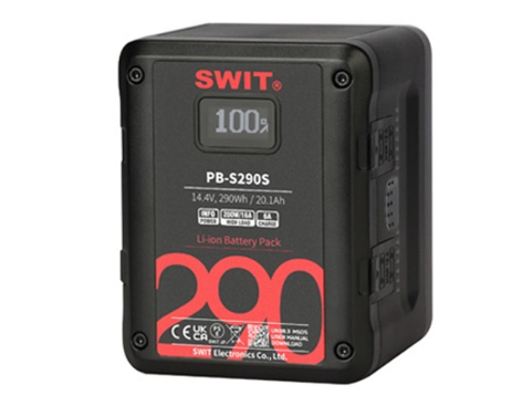 SWIT PB-S290S je vysokokapacitní 290Wh (14,4V) V-Mount cine baterie s více výstupy, výkonem 200W při vysokém zatížení, podporou rychlého nabíjení a OLED displejem pro zobrazení stavu. Kompaktní, ale výkonná, je ideální pro dlouhodobé ENG, kino a kamerové sestavy s vysokou spotřebou.