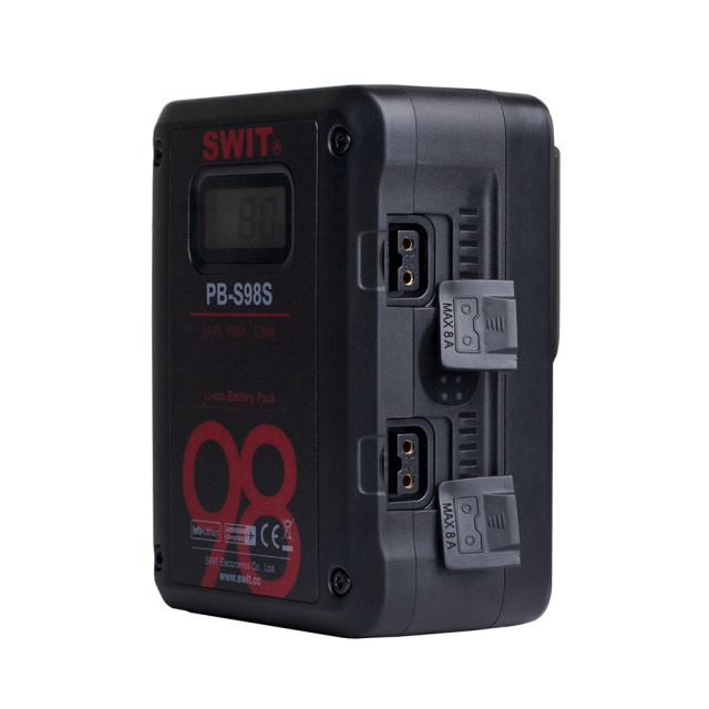 PB-S98S is equipped with 2 D-tap DC output sockets, which can power other on-camera equipments together. The Max output current of D-tap is 8A, 100W.
