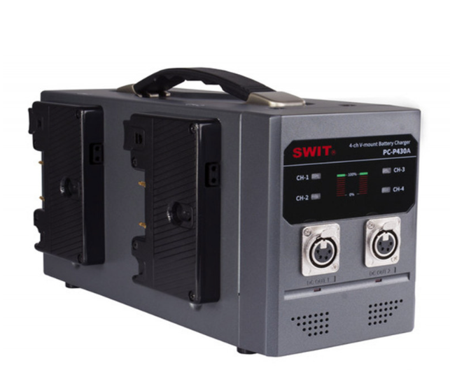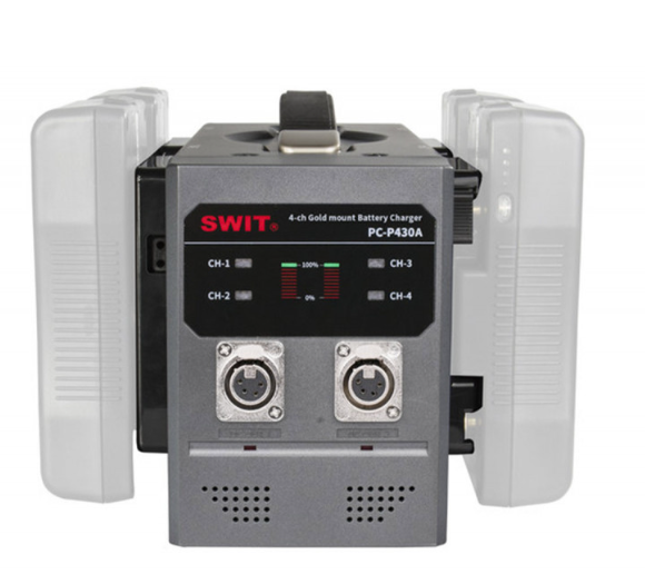 SWIT PC-P430A je profesionální rychlonabíječka Gold Mount se 4 pozicemi, která je navržena pro současné nabíjení až čtyř lithium-iontových baterií při 16,8 V/3 A na kanál. Díky dvojitým 4pinovým XLR DC výstupům (6 A/90 W), univerzálnímu 100–240 V AC vstupu a inteligentním ochranným obvodům funguje také jako spolehlivý zdroj napájení AC-DC pro vysílací a studiové zařízení.