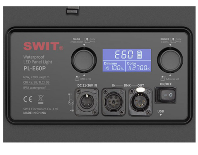 LED panelové světlo SWIT PL-E60P 3. generace Natural-Born-Soft kombinuje pokročilou optickou techniku s profesionálním výkonem v ultratenkém a vodotěsném provedení. Poskytuje 60 W měkkého, rovnoměrně rozloženého světla na ploše panelu 14" × 14" a produkuje 1500 luxů na 1 metr (139,3 fc) s širokým úhlem vyzařování 70°, což jej činí ideálním pro vysílací studia, produkci se zeleným pozadím, rozhovory a živé vysílání.