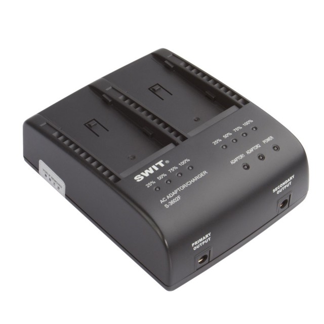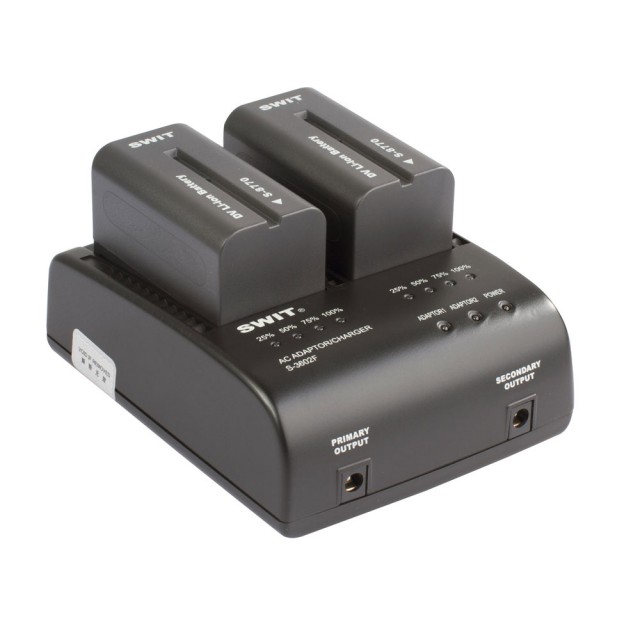 S-3602F is a dual channel charger for SWIT S-8972, S-8970, S-8770, and compatible with SONY L series NP-F970/770 DV batteries.