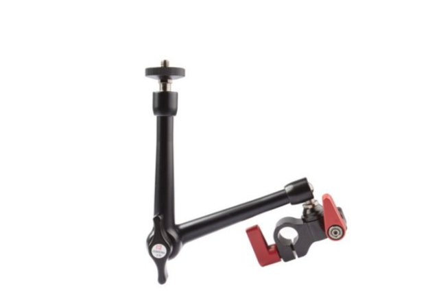SWIT S-7370 Articulating Arm je univerzální montážní rameno určené k připevnění monitorů nebo příslušenství k kamerovým rigům. Je vybaveno 1/4" šroubem na jednom konci a 15mm tyčovým konektorem na druhém konci, což umožňuje flexibilní umístění a bezpečné připevnění k profesionálním kamerovým sestavám.