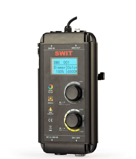 Ovladač SWIT SL je kompaktní, uživatelsky přívětivý ovladač osvětlení navržený speciálně pro panelová světla SWIT SL-100P a SL-150P. Ovladač je vybaven dvěma otočnými knoflíky pro plynulé stmívání a nastavení barevné teploty a umožňuje rychlé a přesné přizpůsobení osvětlení. Přehledný LCD displej zobrazuje aktuální DMX adresu, úroveň stmívání a nastavení barevné teploty pro rychlé sledování.
