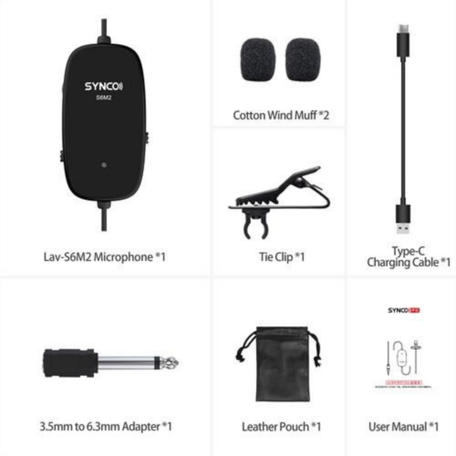 Synco Lav-S6M2 je vylepšená varianta oblíbeného kondenzátorového klopového mikrofonu Lav-S6. Krom funkce pro monitorování v reálném čase nabízí nový model vyšší zvukovou kvalitu a nižší šum díky novým DSP algoritmům, dále hornopropustní filtr, funkci automatické regulace zesílení a velkokapacitní lithiový akumulátor s celodenní výdrží.