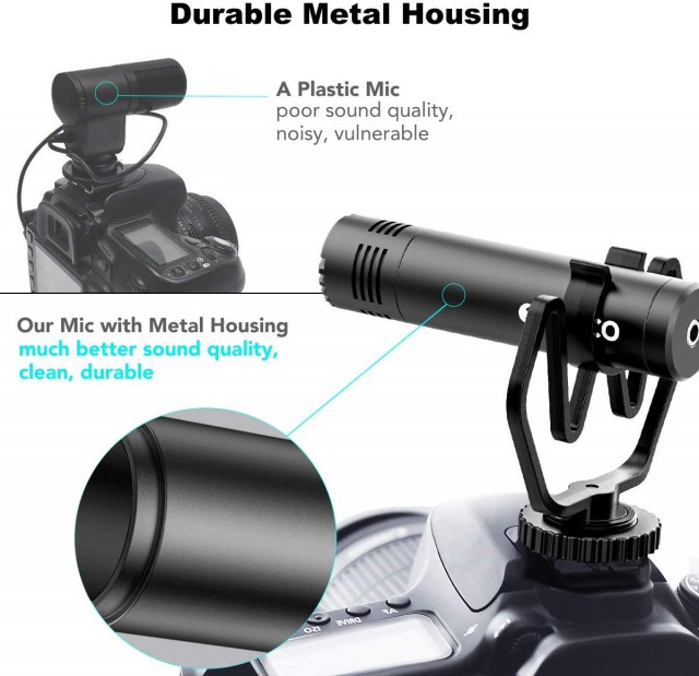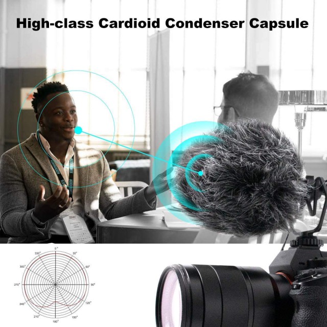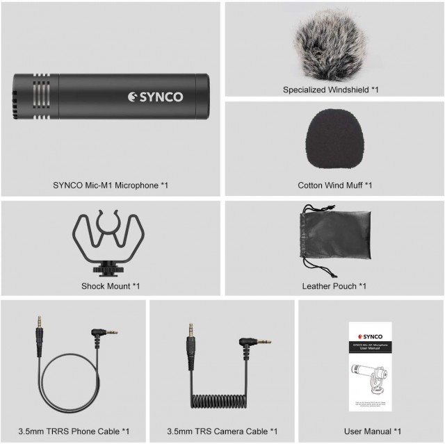 Specializovaný elektretový kardioidní kamerový mikrofon pro DSLR/DSLM nabízí TRS/TRRS 3,5mm výstup, odpružený držák s bleskovou paticí a miniaturní rozměry 22x81 mm s váhou pouhých 26 g! S/N 76 dB, citlivost -42 dB@1 kHz.
