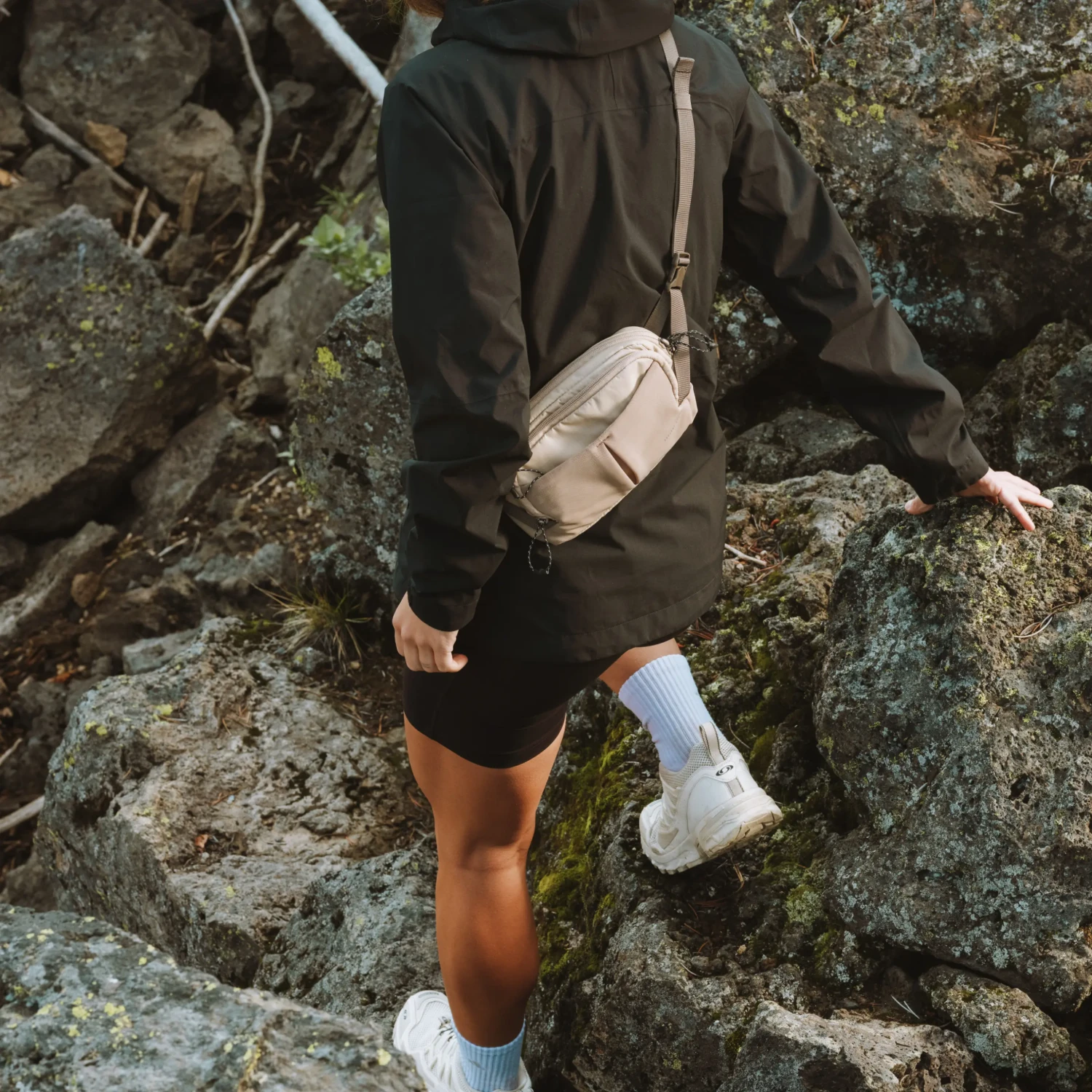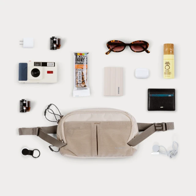 Navržena jako rychlá ledvinka nebo minimalistická crossbody taška, kterou lze nosit pod nebo přes oblečení. Širší tvar a lehká konstrukce se přizpůsobuje pasu a pohodlně sedí v oblasti bederní páteře.