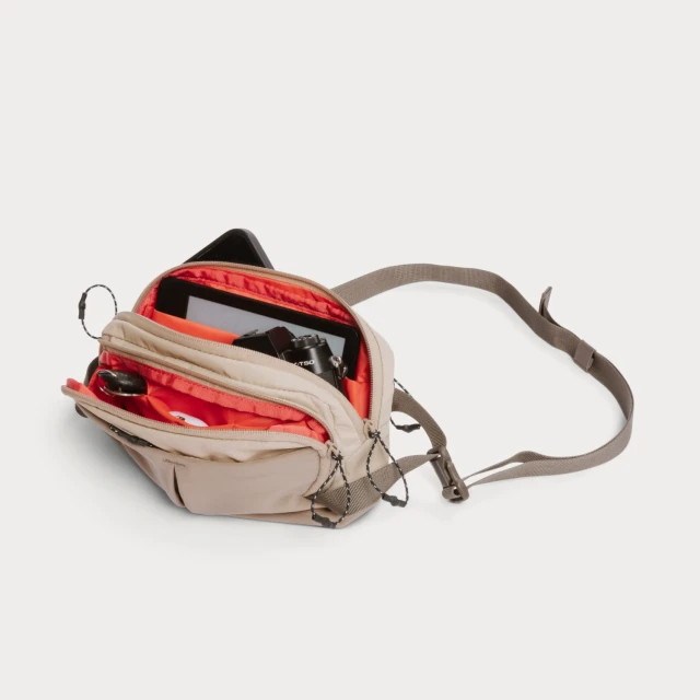 Její ultratenký crossbody design pohodlně sedne přes nebo pod oblečením a přizpůsobuje se tělu díky popruhům a lehkým materiálům, které se pohybují s vámi. Rychle nastavitelné kování umožňuje okamžité utažení nebo povolení popruhu, zatímco hlavní přihrádka pojme všechny vaše denní nezbytnosti.