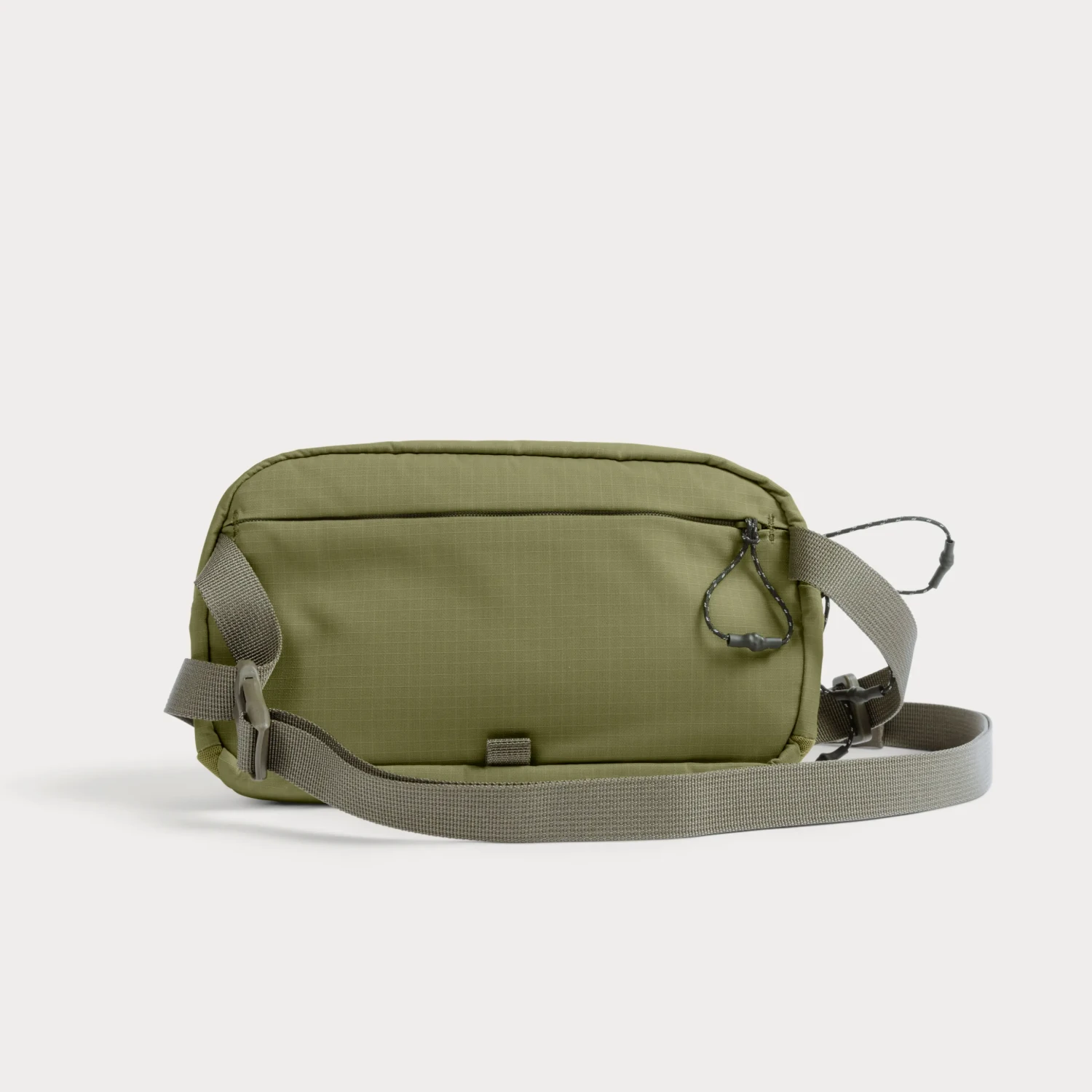 Navržena jako rychlá ledvinka nebo minimalistická crossbody taška, kterou lze nosit pod nebo přes oblečení. Širší tvar a lehká konstrukce se přizpůsobuje pasu a pohodlně sedí v oblasti bederní páteře.