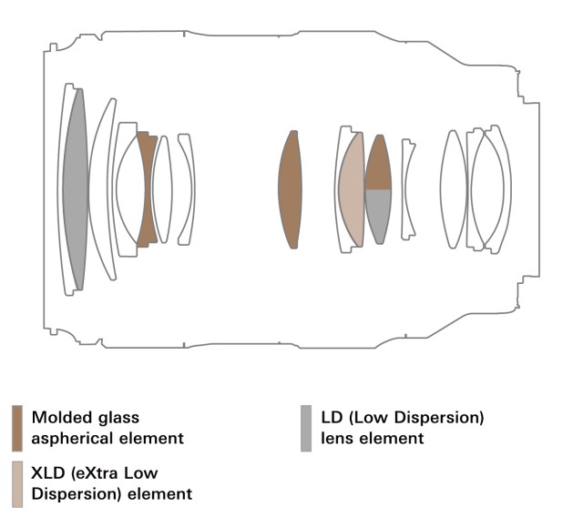 Barevná vada je častou vadou optiky, projevující se mnoha způsoby. Často hovoříme o takzvané chromatické aberaci, která se vyskytuje častěji u širokoúhlých objektivů. LD členy jsou vyrobeny ze speciálních optických skel s extrémně nízkým rozptylem světla, která efektivně kompenzují barevnou vadu, obzvláště patrnou při používání teleobjektivů v krajní poloze.