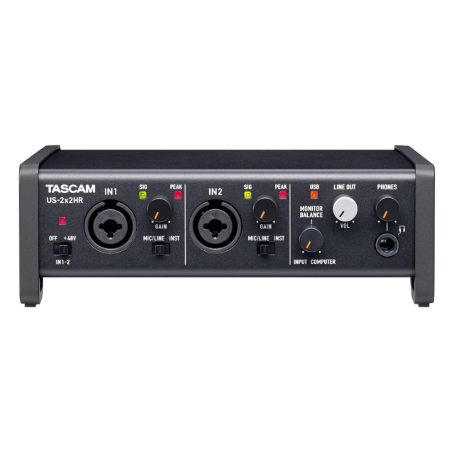 US-2x2HR je členem řady USB audio rozhraní Tascam US-HR s vysokým rozlišením. Poskytuje dva přepínatelné mikrofonní/linkové/nástrojové vstupy a dva symetrické linkové výstupy a také MIDI vstupy/výstupy do počítače se systémem Windows nebo Mac nebo do iPhonu či iPadu. Toto rozhraní je ideální pro tvorbu hudby a domácí nahrávání s vysokými nároky na jednoduché ovládání a zvuk studiové kvality. Díky obsažené funkci zpětné smyčky a podpoře softwaru Open Broadcaster Software (OBS Studio) je však také vynikající volbou pro tvorbu podcastů a živé vysílání.