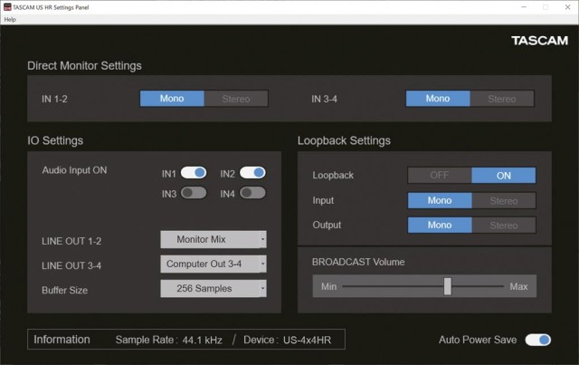 Pro online vysílání, internetovou komunikaci a další aplikace živého vysílání nabízejí rozhraní řady US-HR funkci Loopback, která dokáže sloučit vstupní signály 1/2 se signály 1/2 přicházejícími z počítače (u každého lze nastavit mono nebo stereo) a odeslat tento mix do vysílacího nebo jiného softwaru v počítači. Softwarový posuvník umožňuje nastavit konečnou "vysílací" hlasitost nezávisle na nastavení úrovně linkového výstupu jednotky.