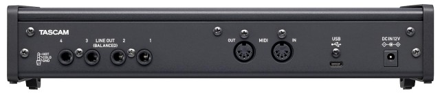 - Poskytuje čtyři zvukové vstupy a čtyři zvukové výstupy a také rozhraní MIDI pro počítač se systémem Windows nebo Mac nebo zařízení se systémem iOS