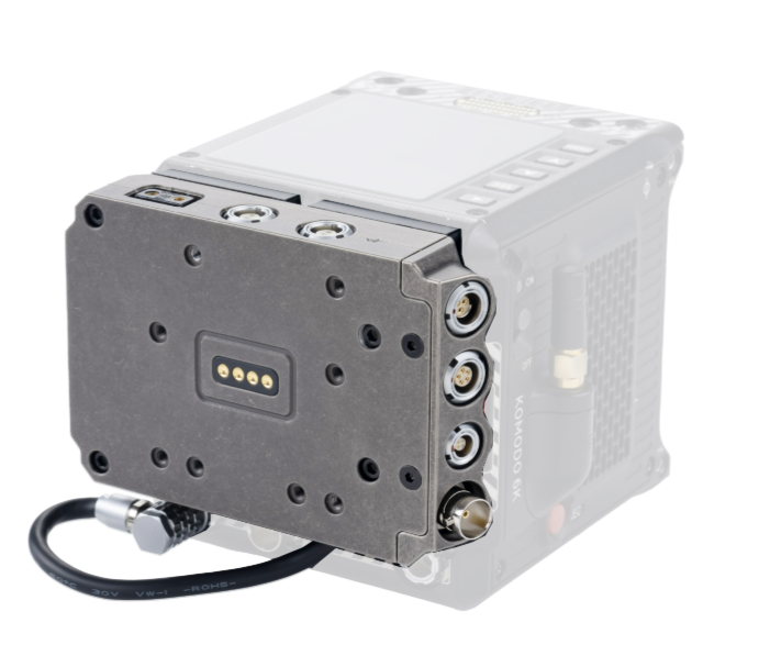 U baterií, které se mohou vybít pod 12 V, modul předčasně vypne napájení – rozdíl v době provozu je však minimální a pomáhá zachovat dlouhodobou životnost baterie. Modul také obsahuje integrovaný kabel KOMODO EXT, který se připojuje přímo do portu EXT kamery a odemyká rozšířené funkce, jako jsou Run/Stop, Timecode a Genlock, prostřednictvím vyhrazených portů. Jeho 3pinový port Fischer R/S umožňuje současné spouštění Run/Stop a napájení příslušenství, jako je Tilta Nucleus-M, pomocí volitelného kabelu Fischer R/S.
