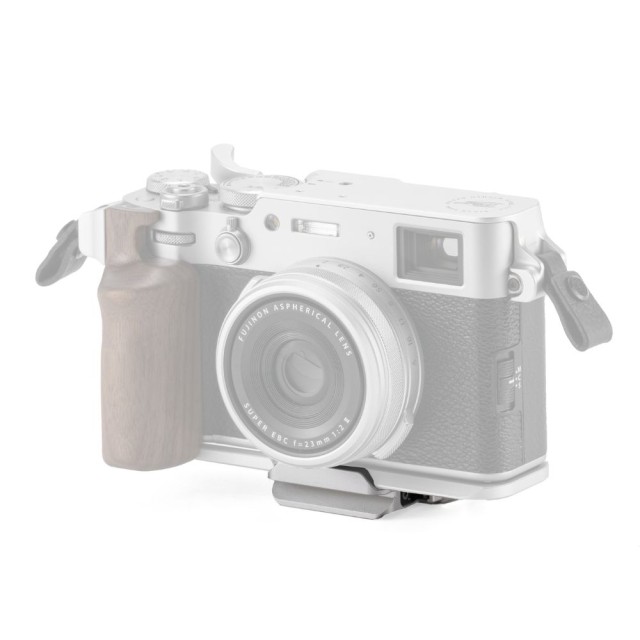 Tato ARCA rychloupínací destička se připevňuje přímo na spodní část montážní základny s dřevěným gripem pro fotoaparát Fujifilm X100VI.