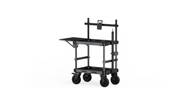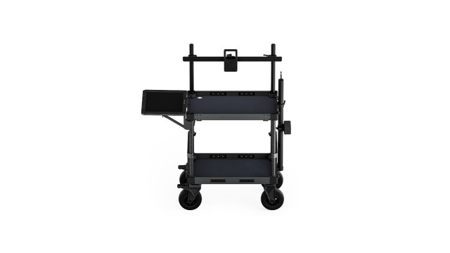 Modulární pracovní stanice: Vozík je vyroben z ODOLNÉHO HLINÍKU a nabízí rozsáhlé možnosti přizpůsobení s několika možnostmi upevnění, včetně závitů 1/4″-20 a 3/8″-16 s polohovacími body. Vozík slouží jako mobilní centrum pro asistenty kameramanů, DIT a techniky.