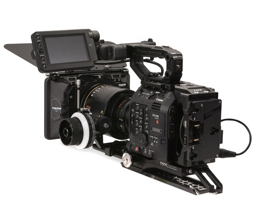Sada Tilta ES-T19-C-AB Kit C promění kameru C300 Mark III nebo C500 Mark II během několika minut v plně vybavenou kameru na rameno. Lehká, ale pevná hliníková klec poskytuje úplnou ochranu a montážní body, zatímco deska Gold-Mount (s 3× D-Tap, 2/3-pin LEMO, USB) napájí kameru a veškeré příslušenství z jedné baterie. Rychloupínací základová deska nabízí rozety ARRI, přední/zadní 15 mm LWS tyče a kompatibilitu s VCT-14 prostřednictvím přiloženého prodloužení a 10″ rybiny. Matná skříňka MB-T12 z uhlíkových vláken se okamžitě připevňuje (včetně adaptérů 80–134 mm) se třemi pevnými zásobníky 4×5,65″ a kompletní sadou tvrdých matů a follow focus FF-T03 zajišťuje plynulou přesnost s tvrdým zastavením. Ideální pro dokumentární, ENG a narativní štáby, které chtějí rychlý, vyvážený rig s kabelovým vedením přímo z kufru.