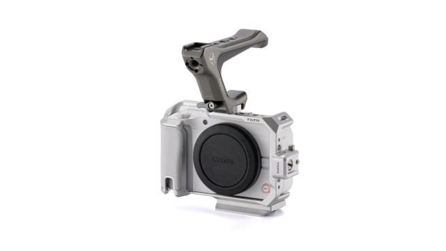 Základní sada klece pro Canon R50 V. Tato klec slouží jako ochrana pro tělo vašeho fotoaparátu a zároveň umožňuje připojení široké škály externího příslušenství pomocí několika možností uchycení, včetně sáněk, NATO lišty a závitů 1/4"-20 s fixačními body (locating points).