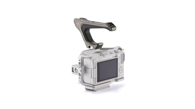 Design zahrnuje integrovaný grip s gumovým úchopem, který se přizpůsobí tvaru vaší dlaně, díky čemuž je držení fotoaparátu v ruce pohodlnější než s tradiční klecí.