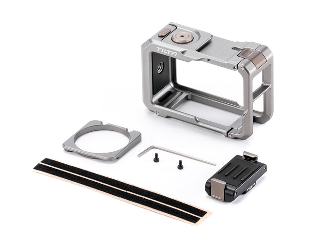 Sada TA-T72-A-TG promění jakoukoli kameru DJI Osmo Action v plně profesionální akční kamerový systém, aniž by ztratila svou kompaktnost. Přiléhavá klec využívá oboustranný design s rychlým uvolňováním pro bleskurychlou výměnu baterie (<3 sekundy), přičemž nabíjecí port, mikrofon a tlačítko nahrávání zůstávají zcela volné. Přední magnetický kroužek umožňuje okamžité připojení snap-on filtrů ND/CPL/Mist od společnosti Tilta a přiložená magnetická základna 1/4"-20 (s protiskluzovým zajišťovacím kolíkem) může být připevněna na spodní nebo boční stranu, což umožňuje úplnou flexibilitu při upevnění na gimbalech, přilbách, hrudníku nebo vozidlech. Silikonové podložky tlumící nárazy a konstrukce z hořčíku a hliníku poskytují extrémní ochranu při hmotnosti pouhých 150 g na kus.